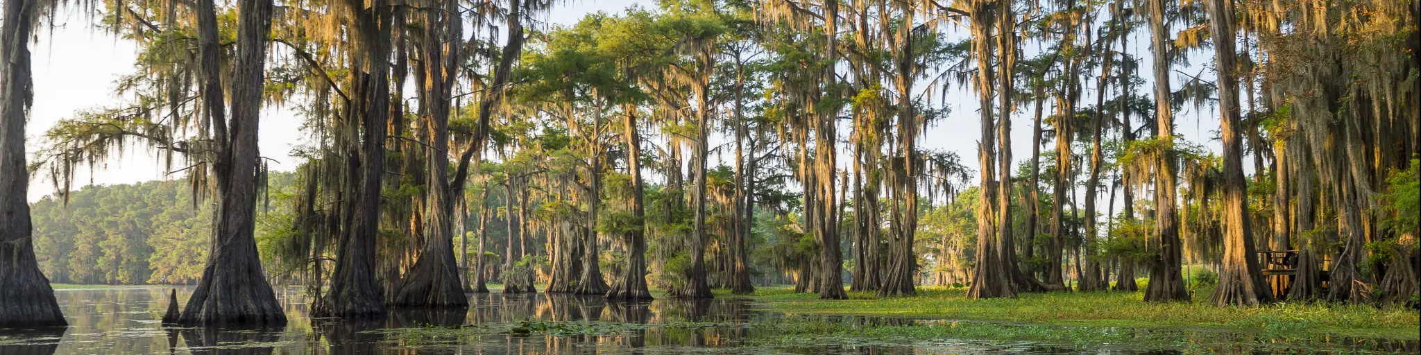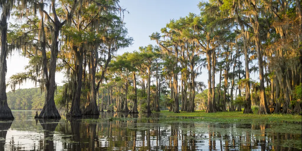 In Atchafalaya, you'll find all the key ingredients to a proper Louisiana swamp - the tall cypress trees growing straight out of the water, the still waters of the bays and lakes and the occasional alligator coming to say hello.